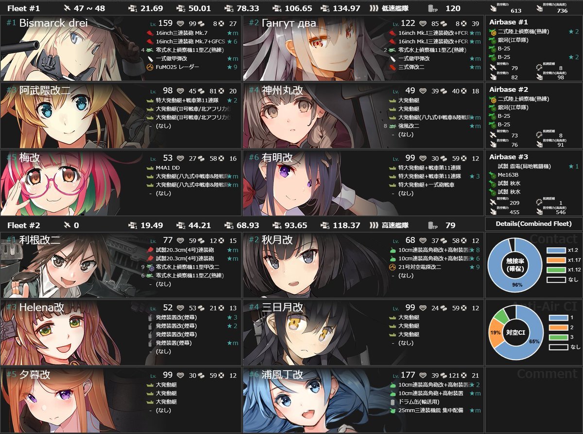 今日の「艦これ」。 資源が危険水域に。でもE2-3が攻略できてません。せめて丙で後半も攻略できるよう、今月から微課金を開始し、頭打ちだった大和、瑞鶴、翔鶴のレベルアップをしました(ゲーム内呼称は無視)。代わりにWTへの微課金をやめました。 pic.x.com/CQgdSFxTU8