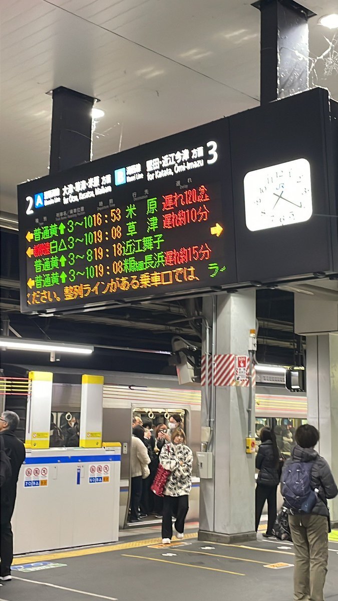 こんばんは😊👋 阪急鉄も無事に終了し、狙いの9300、9302も順光でバッチリ頂きました😆👍 桂車庫から夕方出庫の2本を捕獲して、一旦自宅に戻って支度し直して、夜勤のために茨木駅に到着しました🚃 まだ、JR線はダイヤが乱れて少々遅れていますね😳💦