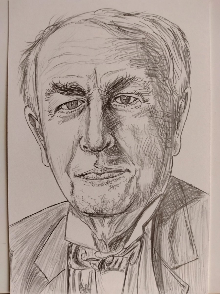 こんばんは、今日は音の日でもありますのでハガキサイズ鉛筆画再投稿(蓄音機の発明でも有名なアメリカ合衆国の発明家トーマス・アルバ・エジソン)です🧐 お休みなさい🌃 #蓄音機白熱電球映写機 #鉛筆画 #モノクロ画 #アナログ画 pic.x.com/OVTVFlOENF