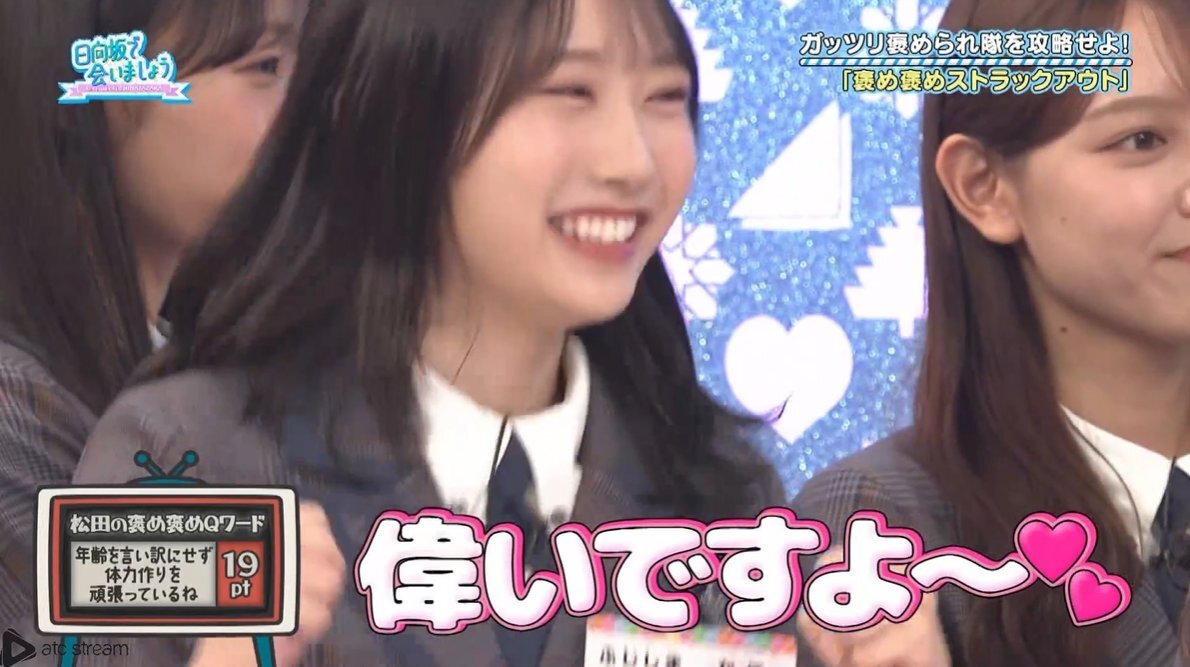 #日向坂で会いましょう 9年目で下積み中? 店のチョイス 随所で結果を残してる 部屋キレイ ”子どもみたいな一面ある”って言われたい #松田好花 ”鍛えてる人は筋肉をほめてもらいたい” #藤嶌果歩