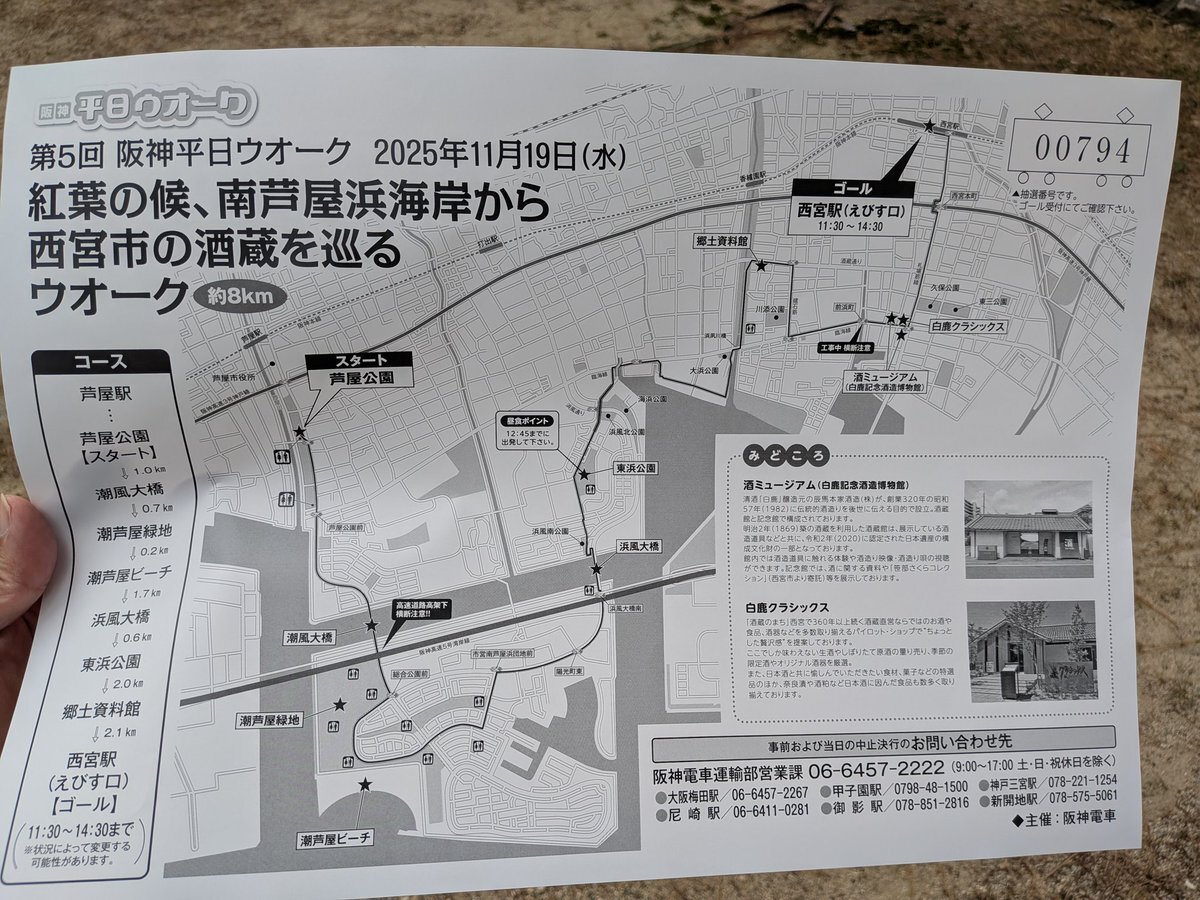 阪神平日ウォーキング👣 今日は、今期最後の阪神平日ウォーキングに参加。 コースは、芦屋駅から西宮駅。 直線だと4km程ですが、芦屋の南側にある海岸方面を経由し、西宮の酒蔵周辺を回るコース。 冷たさを感じる風も少しありましたが、ゴールでは完歩賞のタオルを頂きました。 約8km、879名でした。 pic.x.com/GQVawSstRP