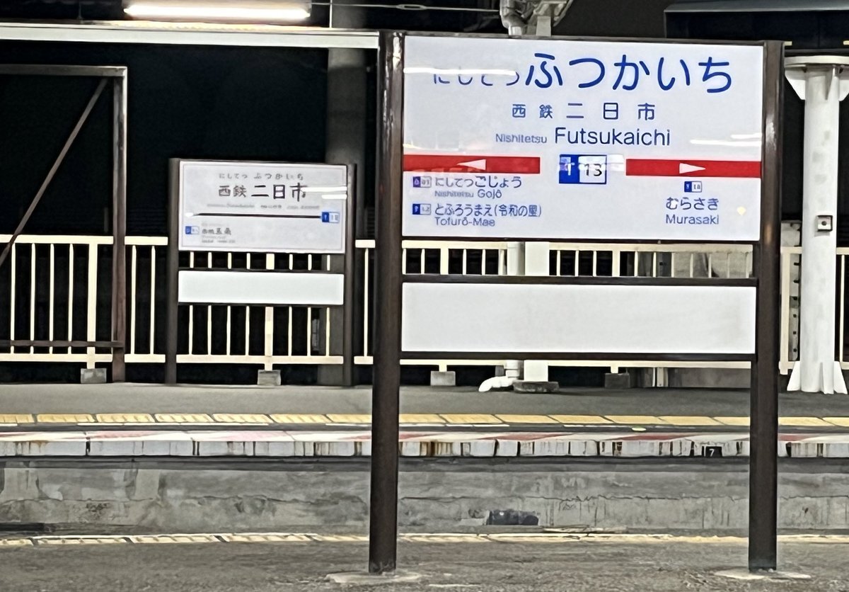 昨日改めて気づいた西鉄二日市駅の風景。 手前の赤ラインは西鉄大牟田線で通過駅表記。 奥はここが西鉄太宰府線の始発だと示す駅名表記。 そうだよそうなのだ。 #西鉄二日市駅 pic.x.com/Jc2gSmg8m6