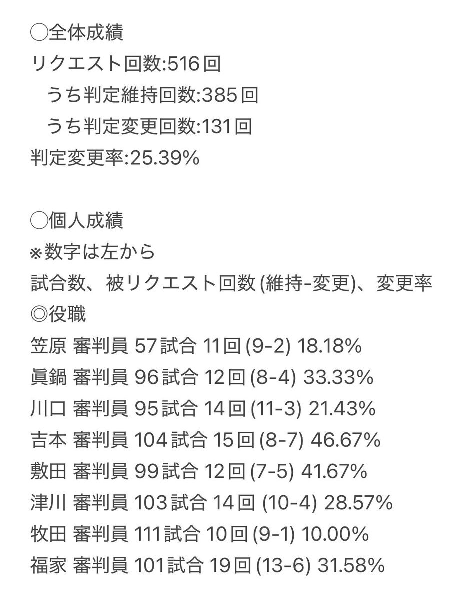 【レギュラーシーズン終了時点 リクエストデータ(暫定)】 ※審判団自ら映像検証を行ったケースおよび映像検証不能のケースは除外 ※公式記録ではありません ※今後数値修正の可能性あり ※出場試合数はASを含む