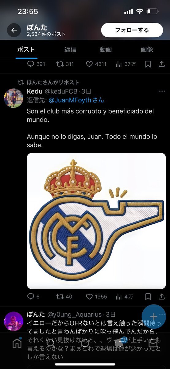 返信先:@y0ung_Aquariusうんやからそれはビジャレアルとバルサの視点で見たらな? 他チームからしたら不公平って言ってんねん何回言わすねん お前も誤審を買収、優遇として見てる感じあるけど? 陰謀論好きなのはお前じゃね? pic.x.com/KHtRsjOGLS