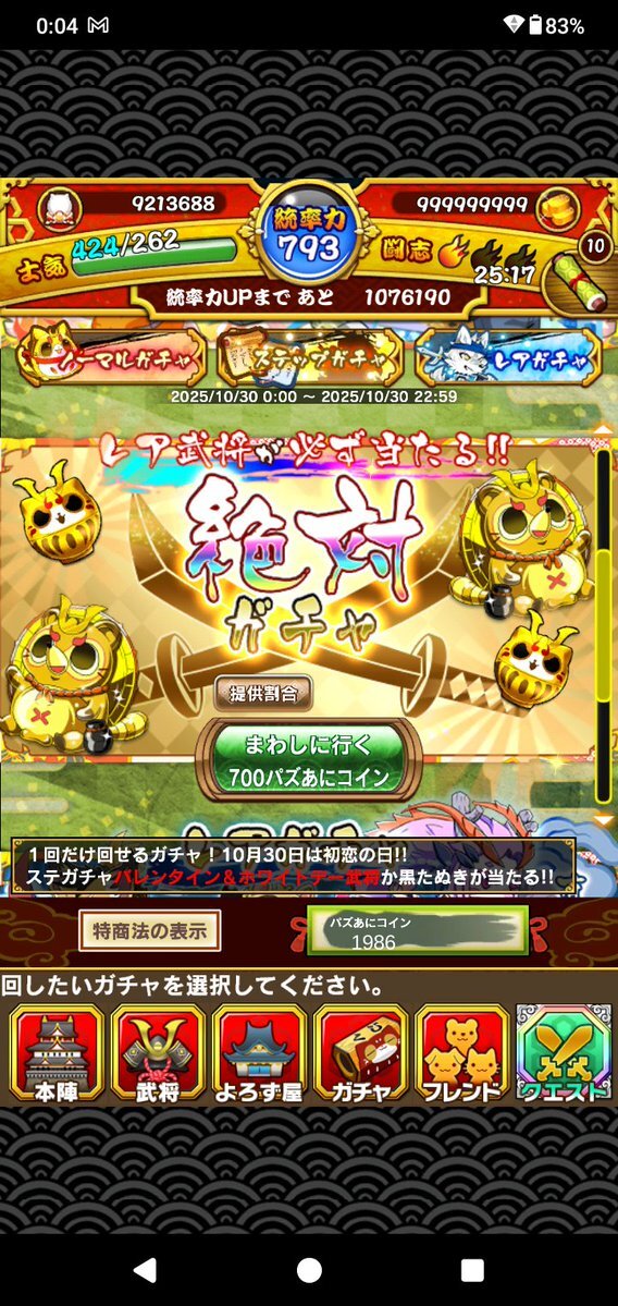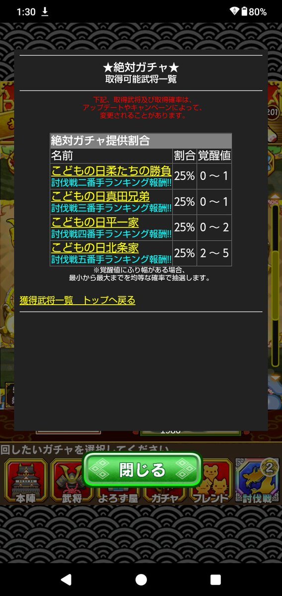 ○本日の定期イベント合戦  ・10/30 08:00 ~ 11:00 猛将誕生 伊豆千代丸  ・10/30 12:00 ~ 15:00 流転の公家 近衛前久  ・10/30 16:00 ~ 19:00 猛将誕生 浅井新九郎  ・10/30 20:00 ~ 23:00 生得悪質 築山殿 pic.x.com/ifbLF8wWgF