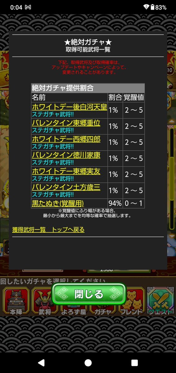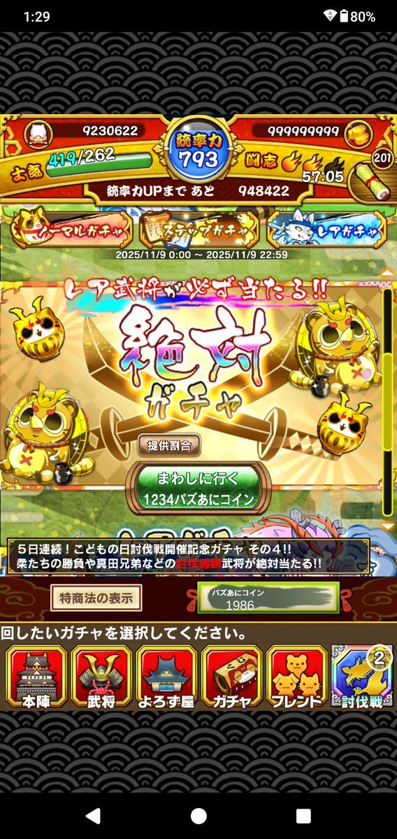 ○本日の定期イベント合戦  ・11/09 08:00 ~ 11:00 智勇の将 三好孫次郎慶興  ・11/09 12:00 ~ 15:00 猛将誕生 三好孫次郎  ・11/09 16:00 ~ 19:00 幕末の才女 篤姫  ・11/09 20:00 ~ 23:00 流転の公家 近衛前久 pic.x.com/6gxcnwZZAP