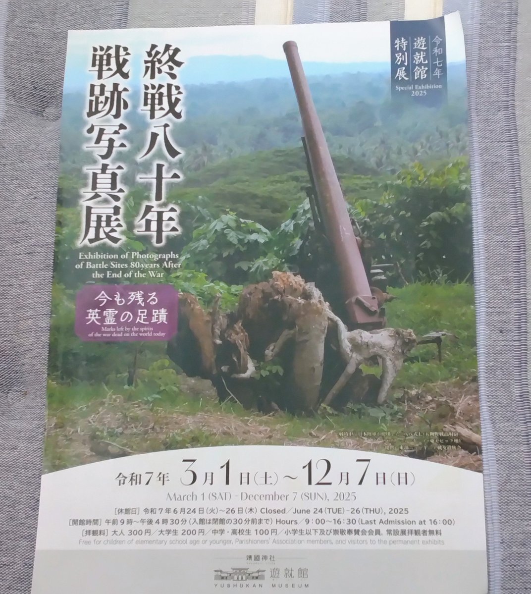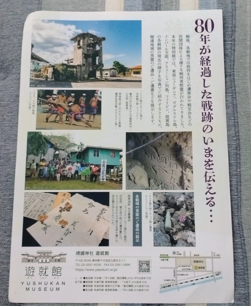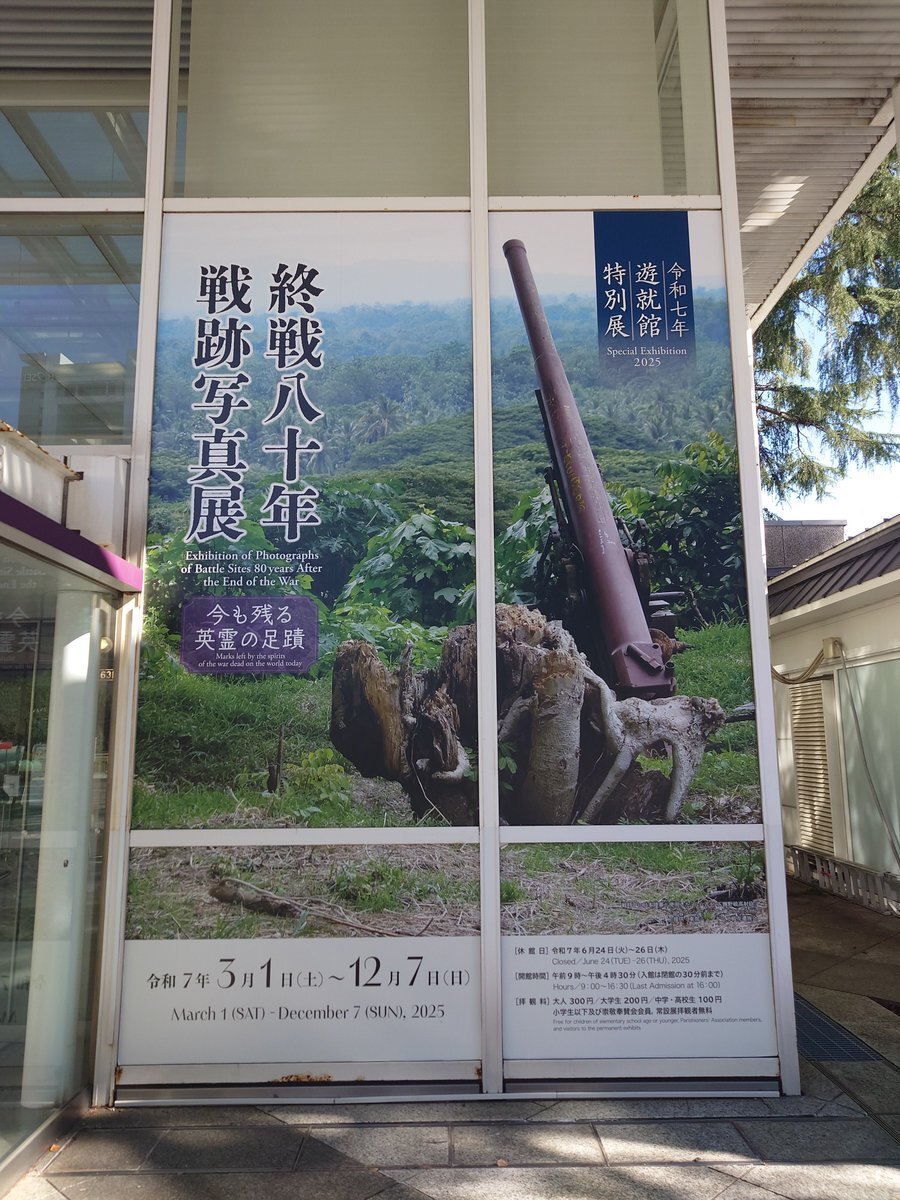 靖国神社も参拝できた 境内撮るのはちょっとなーって思ったから遊就館だけ 自衛隊音楽まつりの時間ギリギリやったからササッとやったし遊就館の入り口とグッズ売り場しか見れてないけど Googleの消しゴムマジックはぐるぐるして全然加工できんけどGeminiで映ってた人達を消してもらったらすご pic.x.com/nQ7jX8VWii