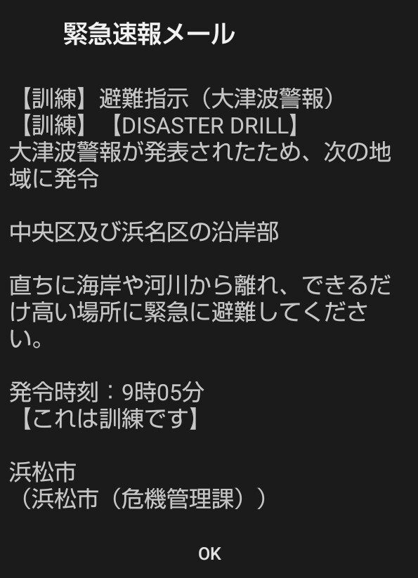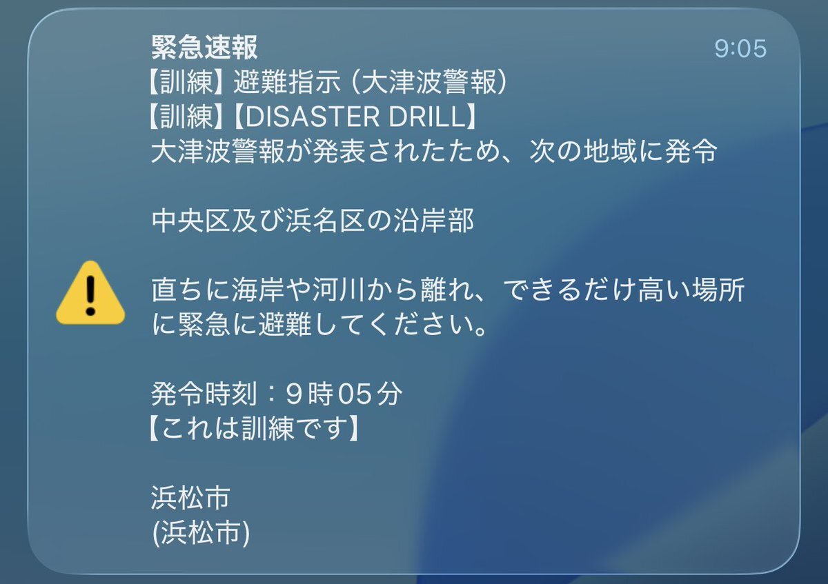 浜松市に移住して半年。実際の警報や避難指示を含めて、この着信音を聞くのも4回目。 またいつものヤツね〜って人も出て来て、いざと言う時に真剣に内容を確認する人が減りそうな気がする。 pic.x.com/6GFNwpUvZO