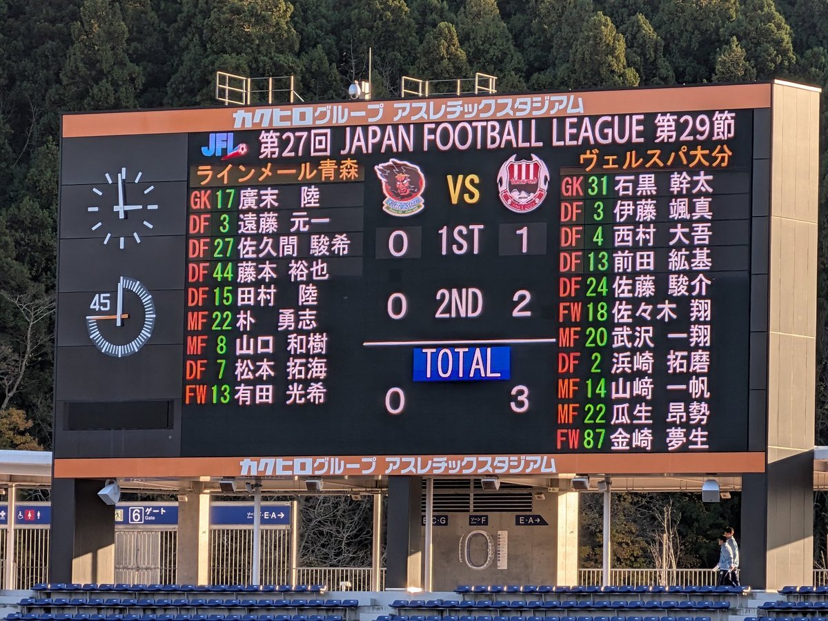 ラインメール青森VSヴェルスパ大分 本当に悔しいんだけど 青森で金崎夢生選手のゴールが見れるなんてすごい👍 そもそも青森のスタジアムで金崎夢生選手がプレーすること想像できなかったよ?ちょっと前まではさ JFL見てきてグルージャ盛岡とかもそうだけどさ、たまにびっくりするよね いい選手いてさ