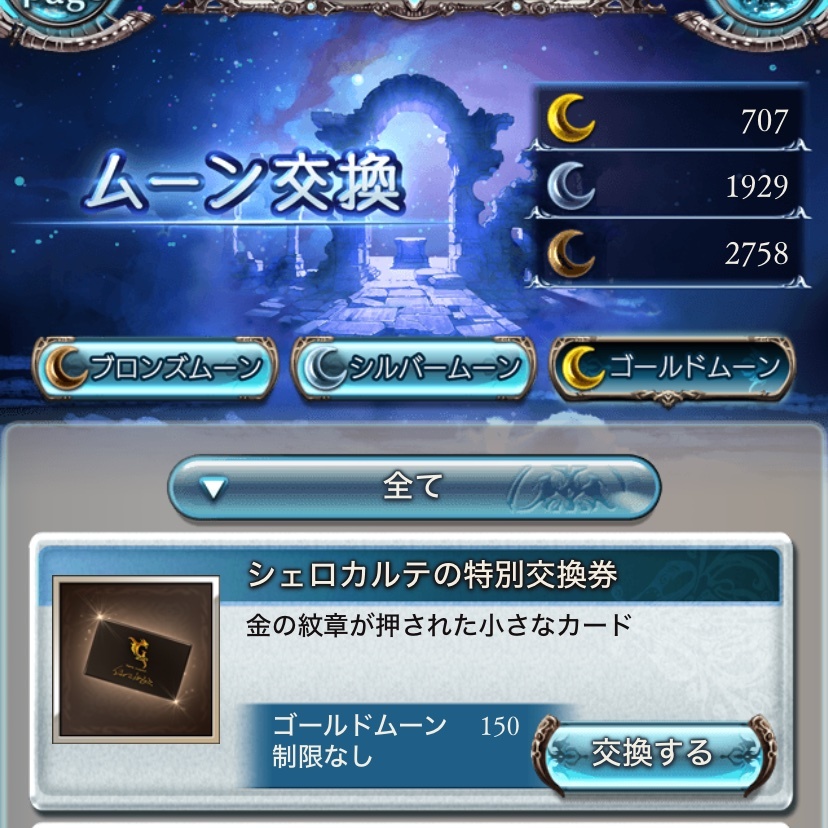 う~ん 金月貯まってるけど、ルミナス武器と交換するべきか、シェロチケと交換するべきか…
