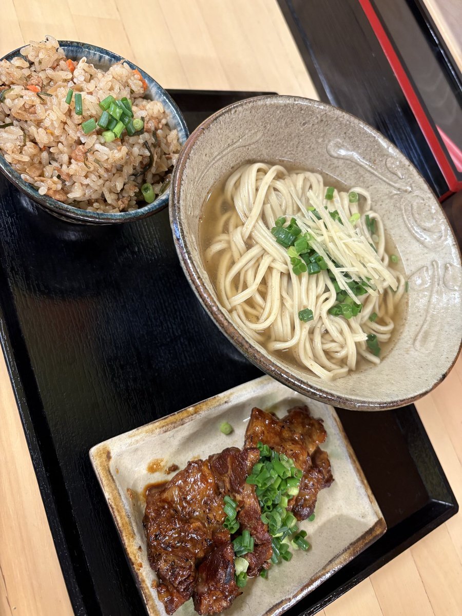 うちなーメシ🦁 金月そばで、沖縄そば&じゅーしー🍜麺もお出汁もお肉も全部旨し😋 そば小盛り+じゅーしーにしたのに、お店の人が間違えて並盛りが来てしまい、随分とわんぱくランチになってしまった🐼 #金月そば #遊びじゃないよ仕事 #沖縄そば大好き pic.x.com/mh4sjTOOGW