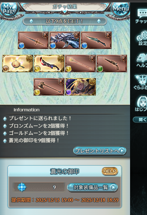 グラブルくん単発無料ガチャ(初日) 新キャラが良いとか贅沢ぬかすな(建前) 水ケージと金月ありがとう!! pic.x.com/83eO8i1s5k