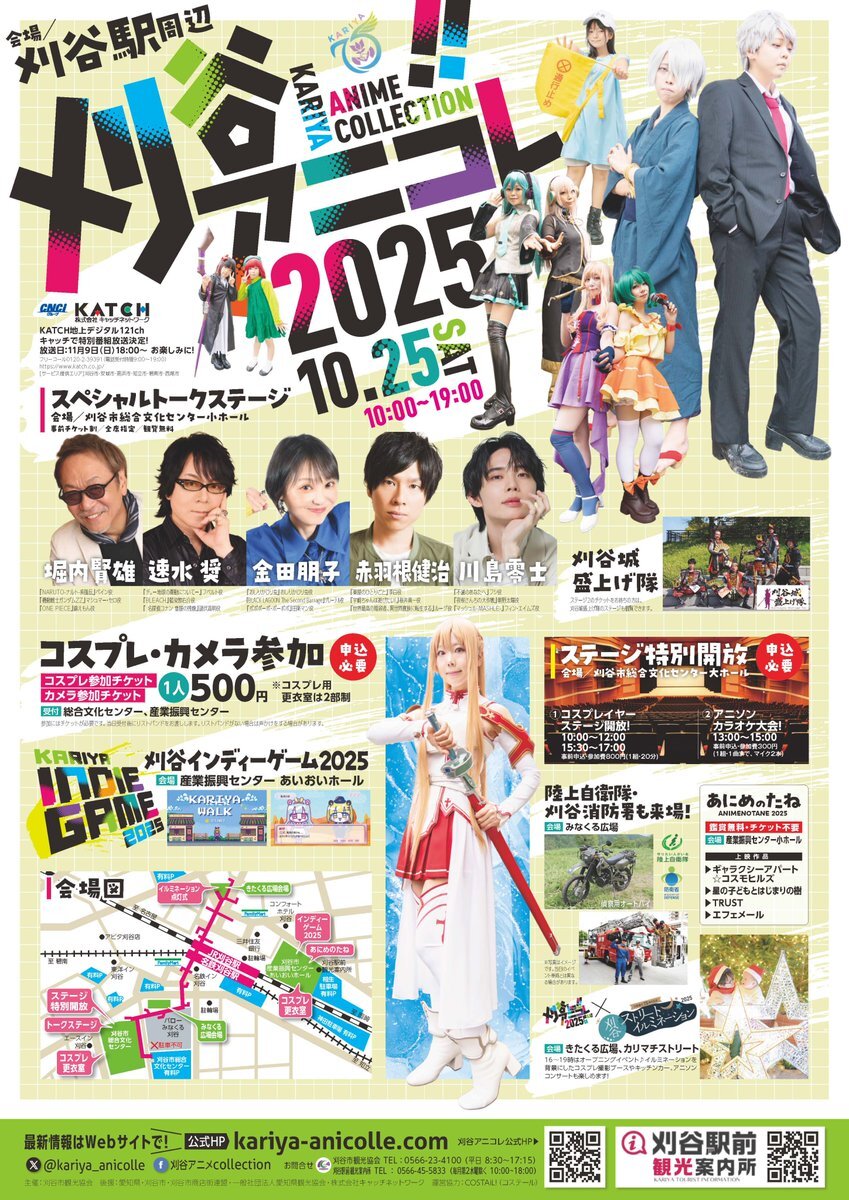⭐刈谷アニメcollection2025、10月25日(土)開催! 2025年10月25日(土)、刈谷駅周辺で開催される刈谷アニメcollection。今年もイベントは多彩です。 ▽刈谷アニコレ2025公式HP kariya-anicolle.com みなさん、拡散のご協力をお願いいたします!皆さんと一緒に盛り上げていきたいと思います!
