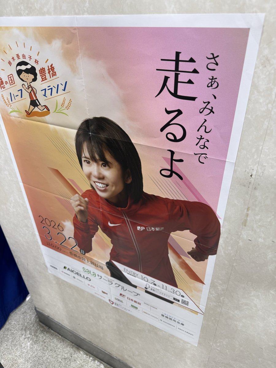 郵便局行ったら亜由子さんのポスター貼ってあった🏣忘れる前にエントリーしておかなきゃ‼️ #ラン活 #40歳独身 #穂の国豊橋ハーフマラソン #鈴木亜由子 pic.x.com/ddgZrkDhi9