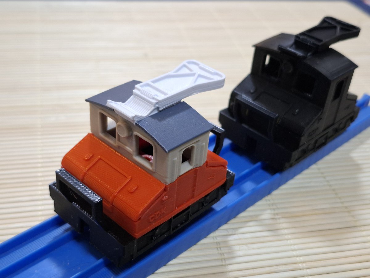 というわけで、銚子電鉄デキ3のツートンカラーバージョンを作りました。例によって無塗装の量産可能なverです。ブラックもFDM出力対応させたので、増産があるならレジンからPLA材質になるかもしれません。少なくとも台車は今後はPLAオンリーです。 pic.x.com/cju2wkPNIB