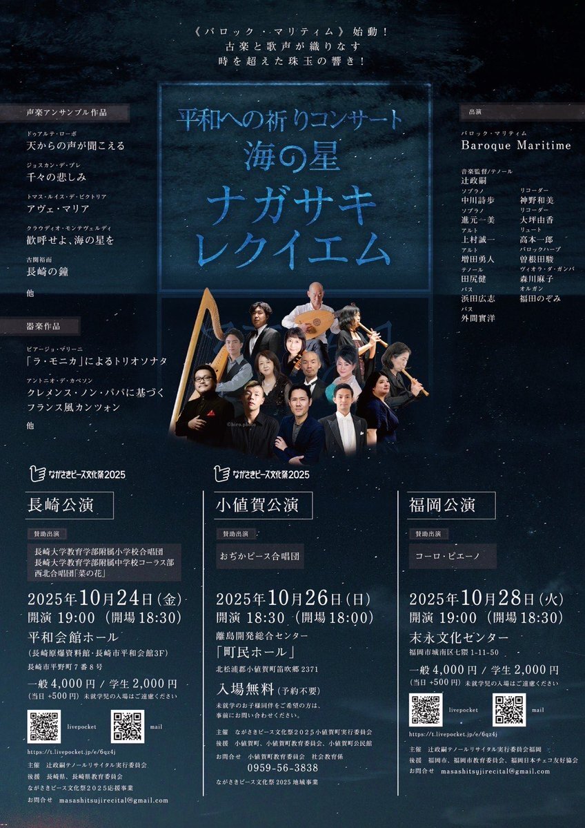 バロックマリティム、長崎・小値賀・福岡での3公演が終わり、本日から京都にて平家物語の稽古が始まります。 福島県出身の作曲家・小関裕而の名曲〈長崎の鐘〉を、福島出身の自分が、終戦80年の今年、長崎で歌えたこと...🥲一生の思い出になりました。 今日から4日間、源義経としてがんばります!!! pic.x.com/mYdQfx00Xr