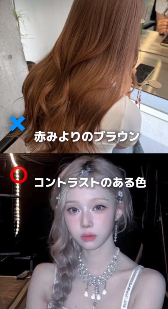 ひなちゃんは自認イエベみたいだけど絶対に1stはブルベ冬だから(一応プロに聞いてみてね)ハイトーンは金髪ってよりかは銀髪とか赤髪、青髪の方が似合うと思う!ピンクも薄めなら似合いそう #長浜広奈 #おひなさま pic.x.com/2Ec7Lonmos