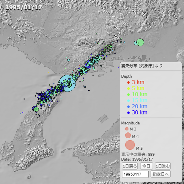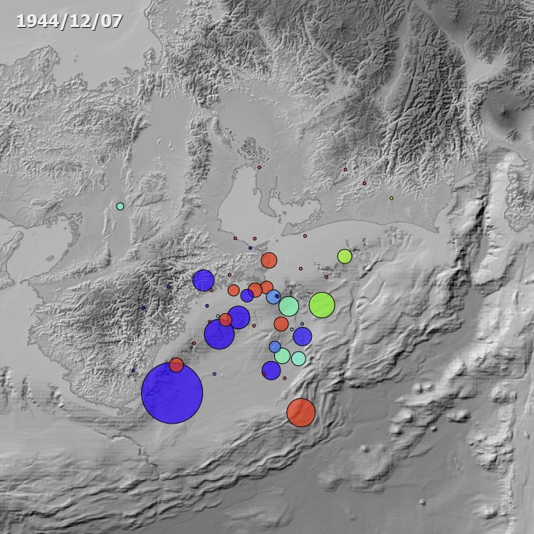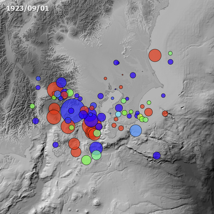 【地質図Navi:震央分布レイヤ更新】 過去データ(1919年~)の震央表示に対応しました。(気象庁震源データより) 日付指定や左右矢印キーで日ごとの変化を確認できます。 gbank.gsj.jp/geonavi/geonav… 例:関東地震(1923)、東南海地震(1944)、兵庫県南部地震(1995) pic.x.com/TETMevzsGf