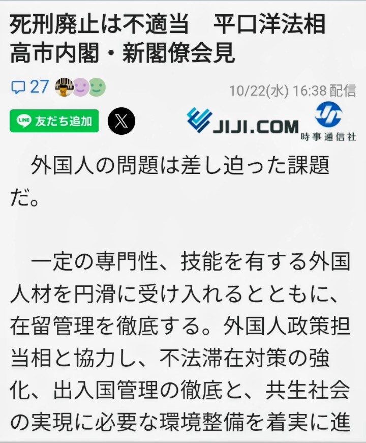 自分は外国の方に乱暴されたりしたこともあります。ここのところのインバウンドも本当に腸が煮えくり返る程ムカつくし、正直、外国人と共生なんかしたくない。 秩序ある外国人共生社会を 小野田紀美・経済安全保障担当相―高市内閣・新閣僚会見:時事ドットコム jiji.com/jc/article?k=2…