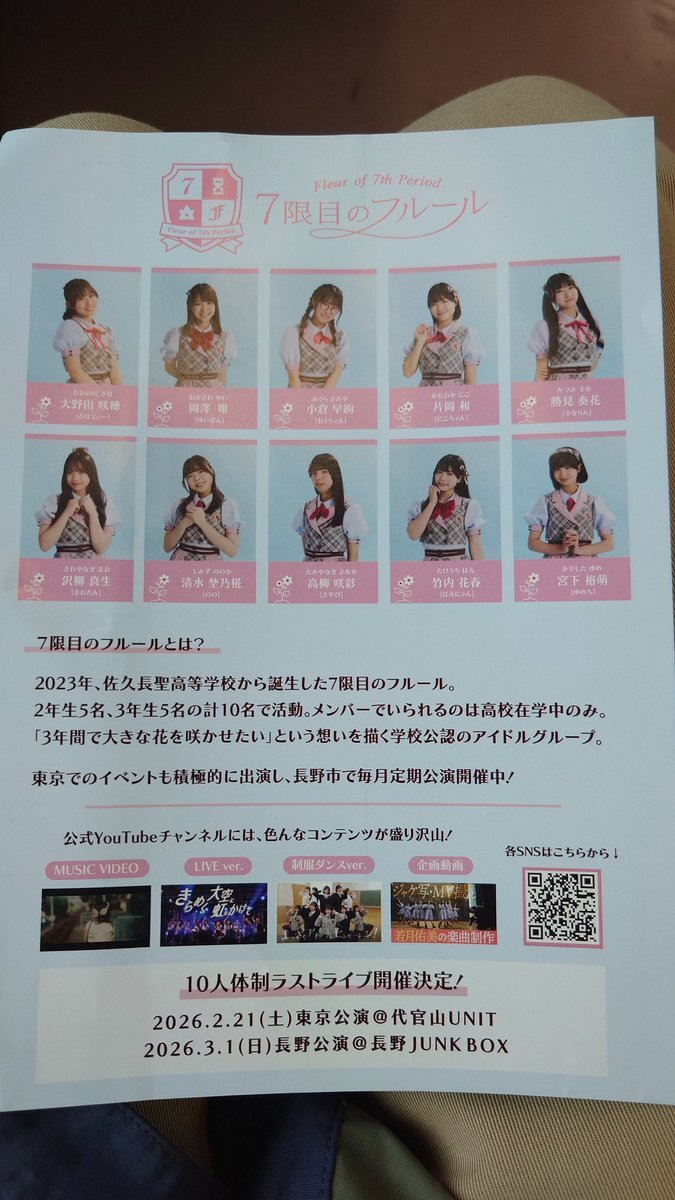 7限目のフルール 衝撃だった 長野県のロコドルが頻繁に東京で活動しているから何かしらあると思って、もっと早く見に行くべきだった センターの岡澤唯は橋本環奈、阿部菜々実に成れる可能性がある 曲も良いし他のメンバーも総じてカワイイ 佐久長聖高等学校は芸能科があるのだろうか? #ナナフル pic.x.com/jM6olp5DAc