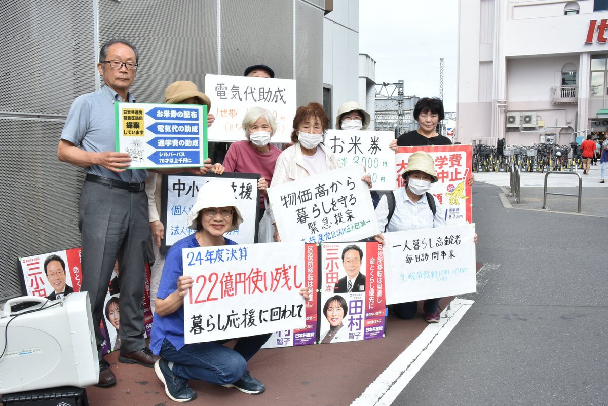 三小田区議とサポーターは、昨日は京成線高砂駅前で宣伝。 21人も‼️✨の参加者は #日本共産党葛飾区議団 の「暮らし応援提案」(お米券、電気代補助など)が書かれたリーフを配布。 提案に興味を示し、三小田さんの訴えを立ち止まって聞いてくれる人の姿も🥹✨ #三小田准一 #1109葛飾区議選 pic.x.com/U1t4t7erka