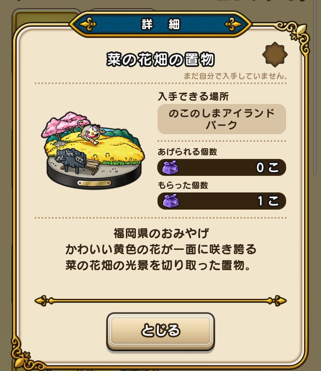 能古島の菜の花畑 青井阿蘇神社のタイピーエン 宮崎の焼酎 交換いただき九州沖縄は離島以外のとこが全て埋まりました♪交換ありがとうございます😊 残りを埋めるには難所が手持ちに欲しい…どこを自力で埋めにいくか🤔 #ドラクエウォーク #おみやげシーズン2 pic.x.com/3q9KSDzz5l