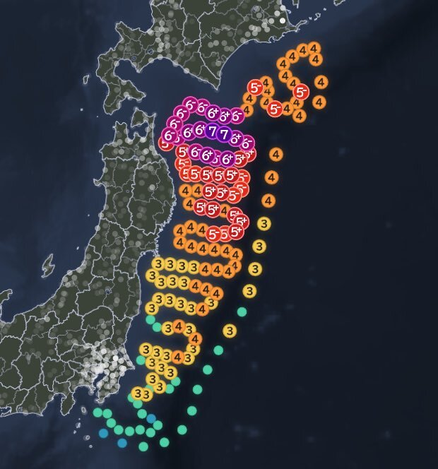 先日の青森県八戸市で震度6強を観測した際に海底震度計から震度7を検知していた!!その時の震源の深さが54kmでマグニチュード7.5だったから、今回はマグニチュード6.9で震源の深さが17kmと、まさかの10km台という浅くなってた!!もし先日の震度6強が今回のように深さ17Kmなら震度7と大津波警報級 pic.x.com/DNRvDzFI2v