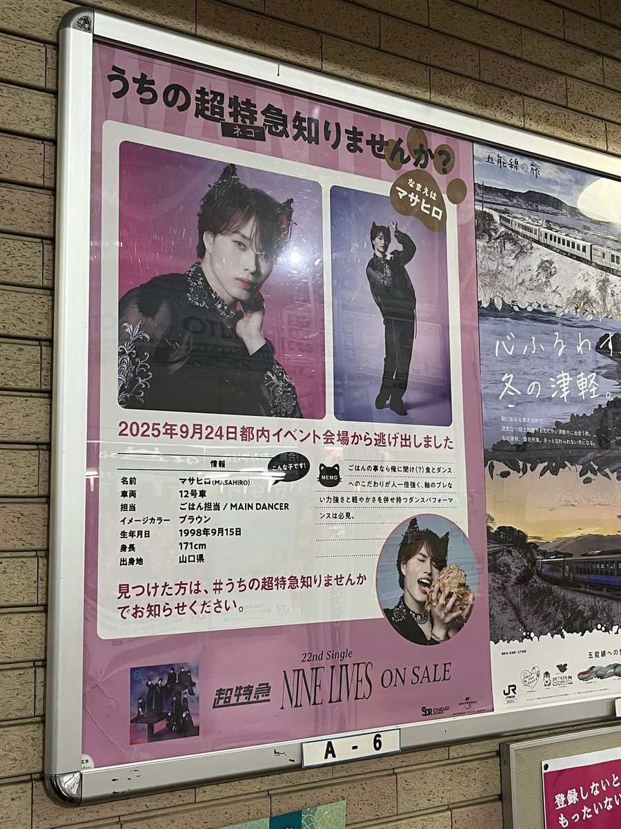 #うちの超特急知りませんか 青森県八戸市 本八戸駅改札内 カイくん発見しました! (反射ごめんなさい🙏) 朝はいなかったからめちゃ嬉しい💙 これで通学路の最寄り駅にカイくんとマーくんいる!! pic.x.com/07GzTndKX2