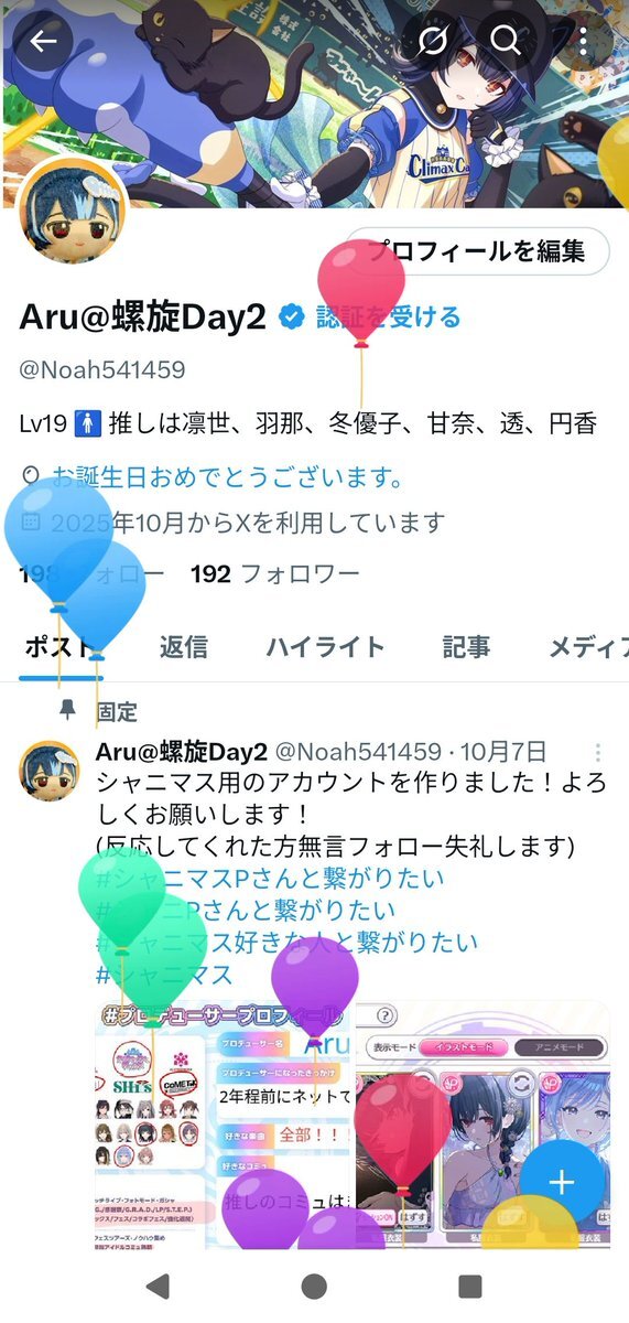 返信先:@drunkenness3cocわ〜!! ありがとうございます!!🎈 何故か無風船なんですよね…🥺他のアカウントだと飛ぶのに…!