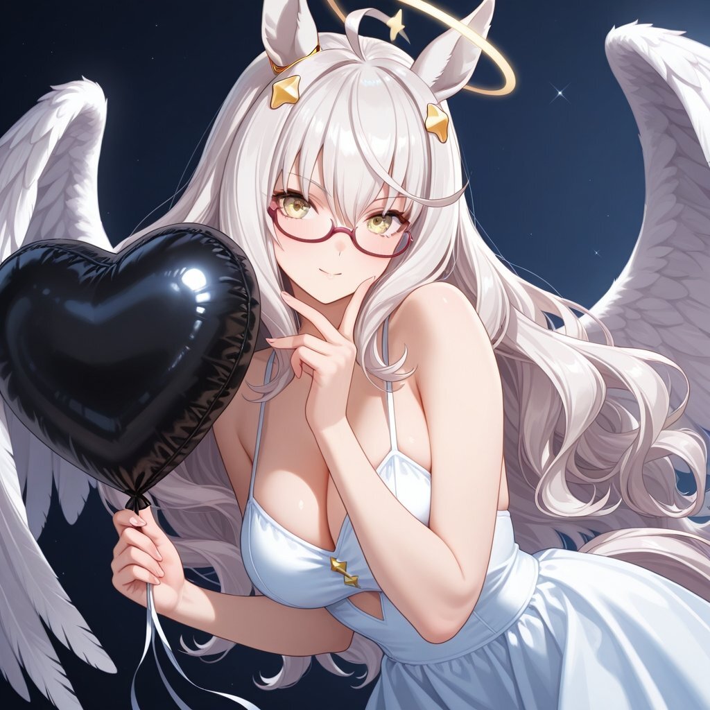 #風船 @pixAI 黒いハート風船を持つ天使のビワハヤヒデさん😍 pic.x.com/IILfSySDjZ