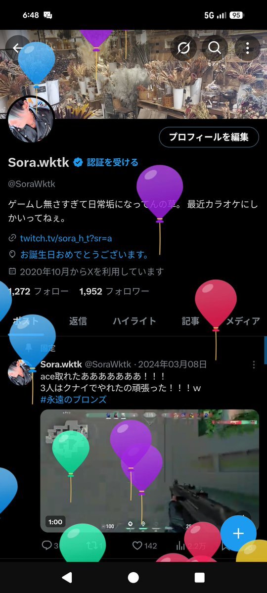 今年も風船飛びました〜 今日で22歳になったんですが、なんか一年が早すぎて…w ヒーローズなくなってから色んな趣味に手を出して最近は音楽と野球に絶賛ハマり中ですw ツイートの頻度はかなり落ちましたが、色々載せて行くと思うので今後もよろしくお願いします!🙇‍♀️ pic.x.com/mG3O03ibpG