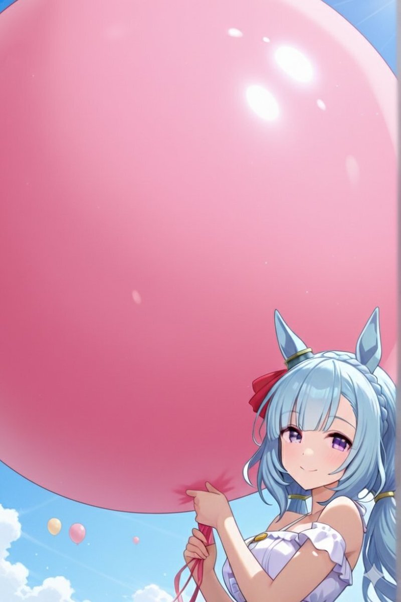 #風船 @pixAI pixAIで生成してGoogleGeminiで修正しました。ピンクの巨大風船を持つお姫様衣装のメジロアルダンちゃん😍 pic.x.com/m6Wsme2Rxa