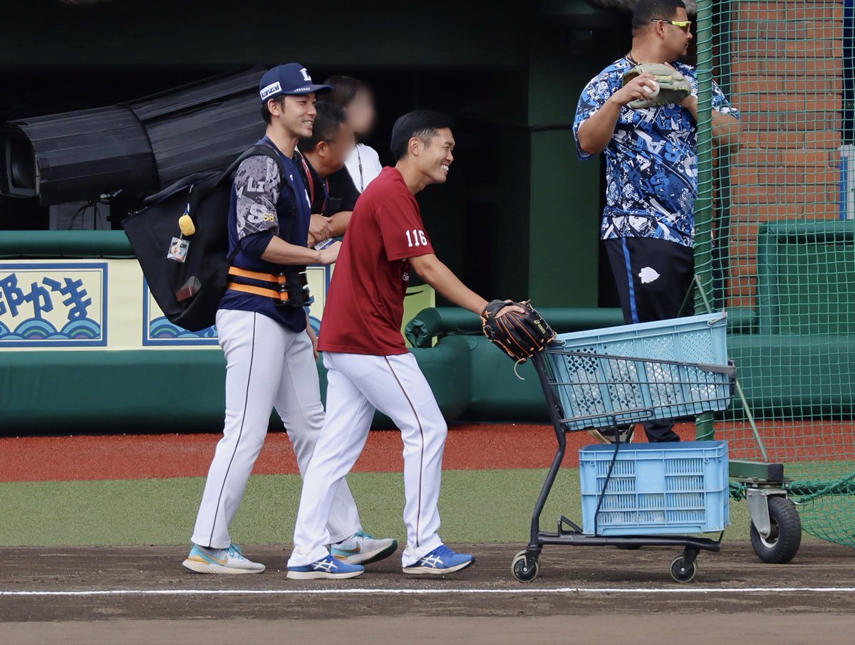 練習前。楽天でバッティングピッチャーをされている元カープの高橋樹也さんと。 pic.x.com/Sxt9itH6qw