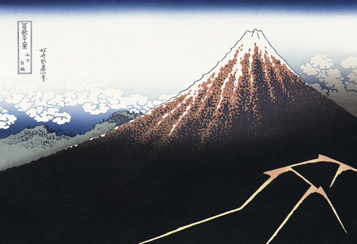 100均が富嶽三十六景をグッズにするとき「神奈川沖浪裏」「凱風快晴」は鉄板だけど三役残りの「山下白雨」はあんまり選ばれない気がして可哀想(´・ω・`) やっぱり凱風快晴と構図が被るからかしら 黒富士かっちょいいのに(´・ω・`) #葛飾北斎 #富嶽三十六景