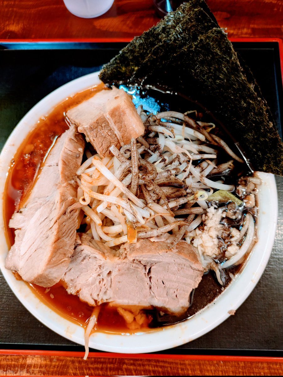 2025/10/19 上田市 ラーメン富士松 中W (400g)+黒富士(純とろ豚マー油) ニンニクアリヤサイマシアブラ普通 塩尻市 クア・アンド・ホテル信州健康ランド pic.x.com/fhAhyfiydU