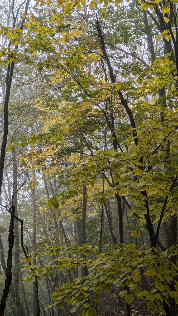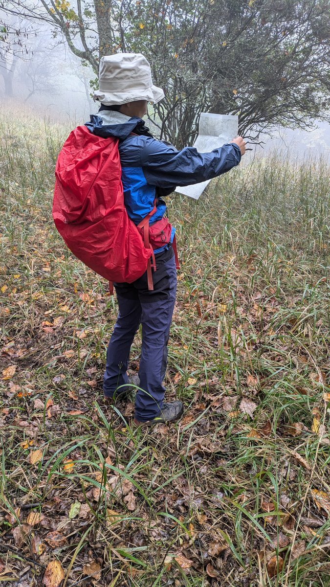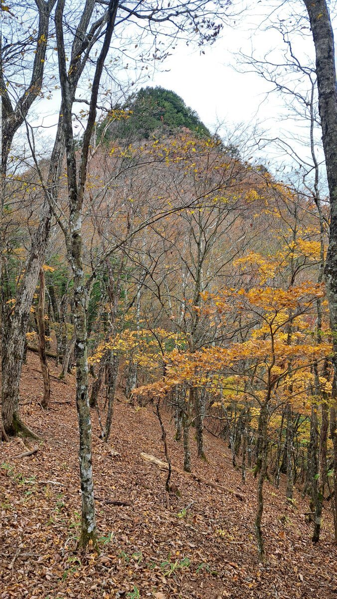 奥秩父前衛 茅ヶ岳の近くに「黒富士」と言う山がある。小さな山だけど北側の小ピークから見ると黒い富士山型のカッコいい山。ただ位置を変えると台形に姿を変える。この小ピークには道が無く「地図読み」に最適な山。残念ながら今日は霧雨で時々刻々と姿を変える山は見えなかった。紅葉が始まってる。 pic.x.com/RtdtbQqM8x