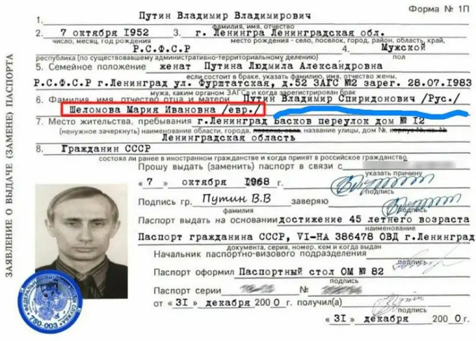 返信先:@fBQbWoJm6sm4IZbプーチンの国籍カードによると母親が三文字のようです。彼女の名前の最後に「/Евр./」と書かれていますが、これは三文字の略語であるЕврейだとのことです。黒川敦彦も以前動画で説明してましたよ。今は消えてますが…。ロシアの指導部は丸ごと三文字でしょう。この件は調べたほうが良いですよ。 pic.x.com/3UwzgCFfIq