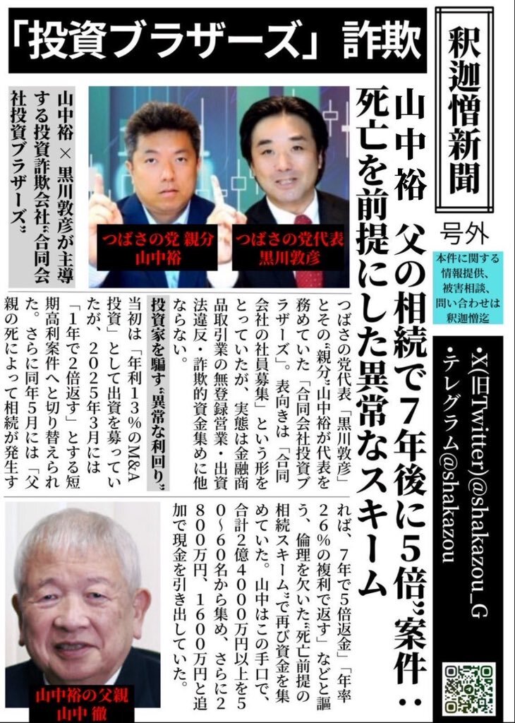 【顧客名簿が流出】 ▪️山◯裕(Yutaka Yamanaka)@toushibros ▪️黒川敦彦@democracymonst 元本保証や父親が死亡した際に受け取る予定の不透明な遺産相続を根拠に出資を募り あらゆる出資法違反を犯している極悪コンビ 会員を欺き、顧客名簿を売却し私腹を肥やす犯罪集団投資ブラザーズの通報協力求む pic.x.com/cnXNikjKcE