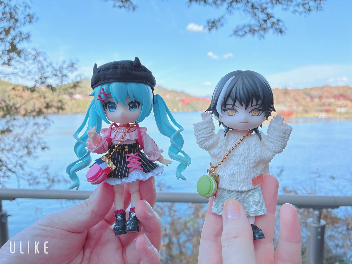 #ねんどろいどどーる #ねんどり 今回はうちの子が桜ミクちゃんではなく黒鶴さんだったので初対面だった✨ カバンはお揃いのマカロンだよ♡♡♡ pic.x.com/ix6IIQABCe