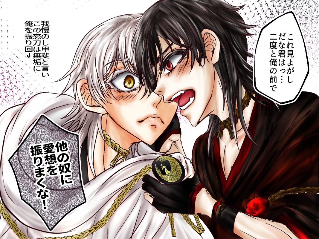 返信先:@tanutanu_kngたぬさんありがとうございます!🥰💕💕 不穏なのも良いですよね!!!徐々に黒鶴になっていく過程見たいなと思って描きました…!! 触れれば斬られる冷たい刀の鶴丸も良い…🤤