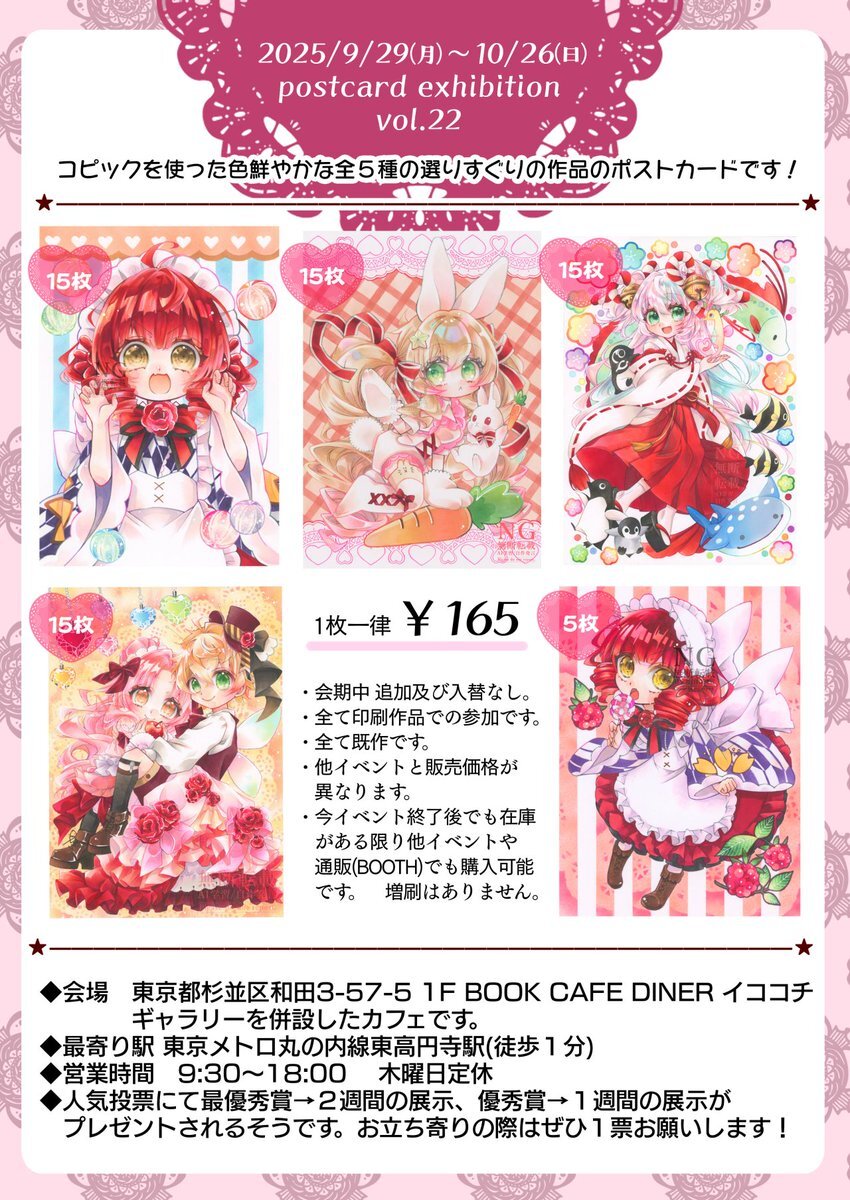 【イベント告知】2025.9.29㈪〜10.26㈰東京杉並区ギャラリーカフェ #イココチ 様(@ikokochi)主催 「postcard exhibition vol.22」 参加します🎉👏 ◆時間: 9:30〜18:00 遠目でも目立つカラフルなお気に入りの作品達です✨人気投票優秀賞で展示が出来るのでぜひ1票を! #イココチポストカード展