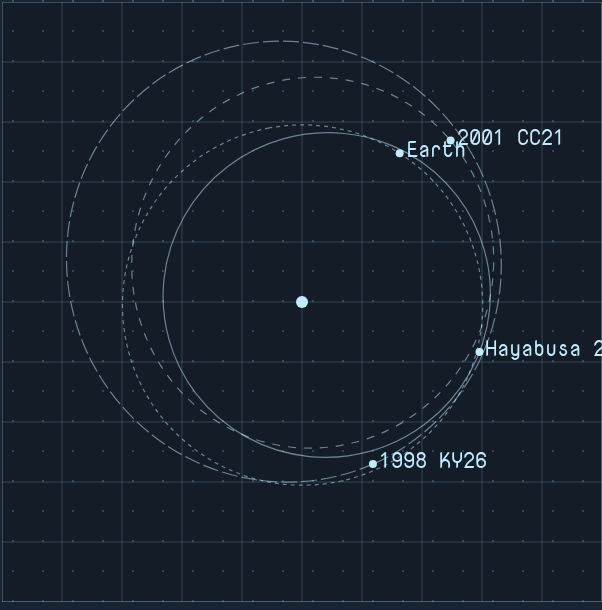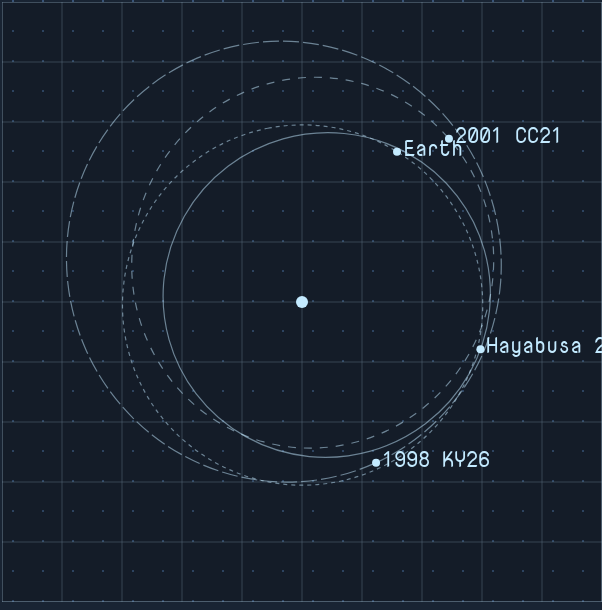 #Haya2NOW 🌏地球から はやぶさ2 1億7833万km(⏱️595s) トリフネ 4420万km(⏱️147s) 1998 KY₂₆ 2億5925万km(⏱️865s) #はやぶさ2 #Hayabusa2 haya2now.jp 16 pic.x.com/0EWXGB6y5w