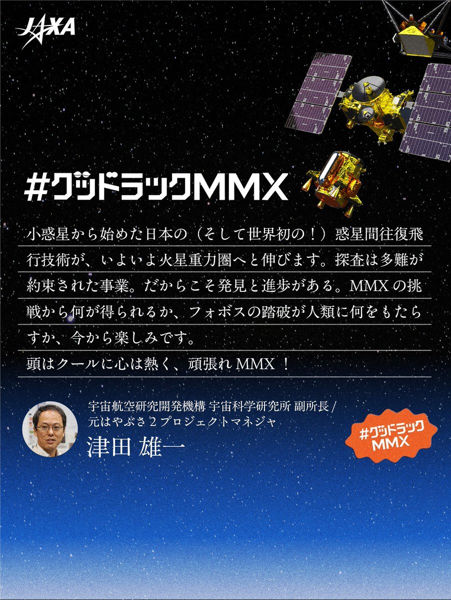 #はやぶさ2 から #MMX へ想いを繋げ! 日本の宇宙業界を熱狂させた、 はやぶさ2 (@haya2_jaxa ) 元プロジェクトマネージャ 津田雄一さんよりメッセージが届きました。 #グッドラックMMX 特設サイトでは、探査機に搭載するメッセージを大募集中!🚀 受付は2026.1.18まで! goodluck-mmx.jp pic.x.com/oHTlImjqJ3