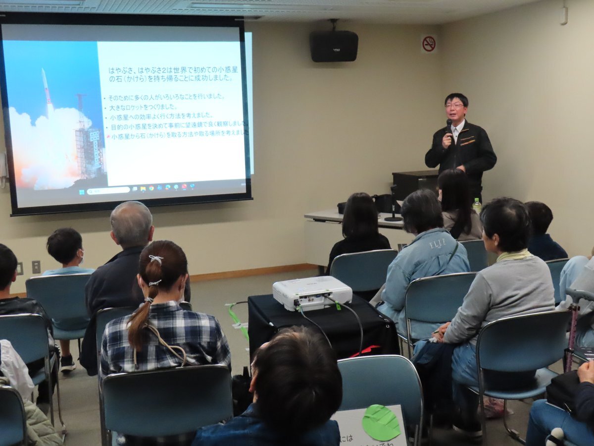 《湘南大庭市民図書館 読書週間行事「未来へ続く宇宙開発-JAXAが図書館にやってくる!-」》 11月8日にJAXAの方をお招きし、はやぶさ、はやぶさ2などの宇宙開発プロジェクトのお話を伺いました。参加の方から「実際のお話を聞けて感動した。」等の感想がありました。#藤沢市図書館 pic.x.com/TrvVPsqqR3 x.com/Fujisawa_lib/s…