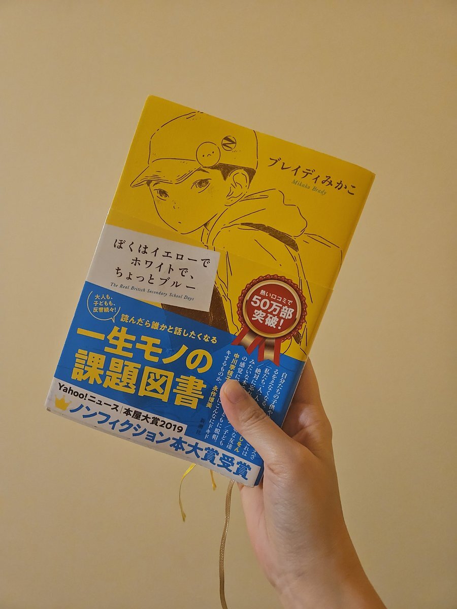 ぼくはイエローでホワイトで、ちょっとブルー2 ブレイディみかこ #読了 英国の元底辺中学校に通うぼくの日常と親子の成長物語。前作に続き、息子さんの鋭い視点や柔軟な考え方にはっとさせられた!私が同い年の時、自分のことばかりで社会のことを考えたこともないし、親と深く対話してなかったなぁ pic.x.com/vpBZKorhwj