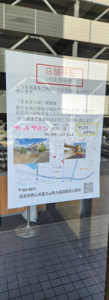 『まねきの湯』跡地探訪。 外からみた感じですと、猫ちゃん看板だけが取り外され、あとは変化がない様子。引き継ぎの白紙撤回は本当だったんですね…… また、カットサロンは移転したようです。 pic.x.com/V8klX01qBe