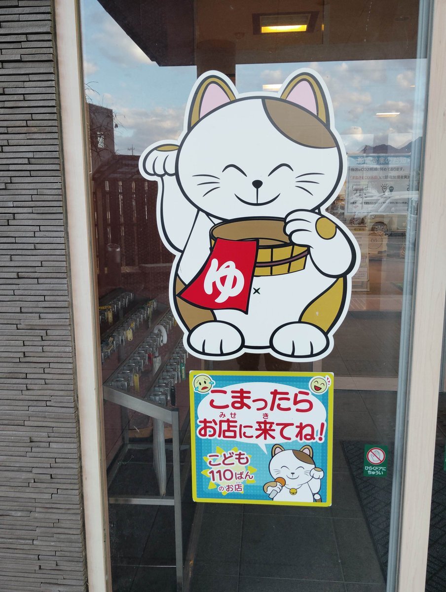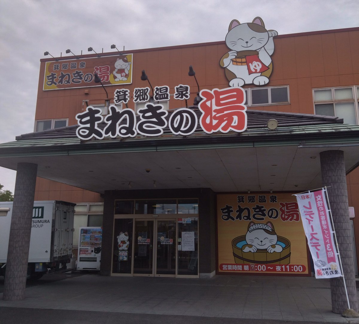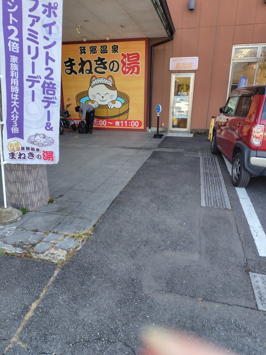 高崎箕郷のまねきの湯に来ましたわ。私と同じモチーフのネコさんが桶持って招いていますわ。よくあるスーパー銭湯的な温泉ですが、今月末で閉館とのこと。この時間でそこそこお客さんいるので何処か買い取らないかな。 pic.x.com/9nMMlEko82 x.com/ukkey_999/stat…