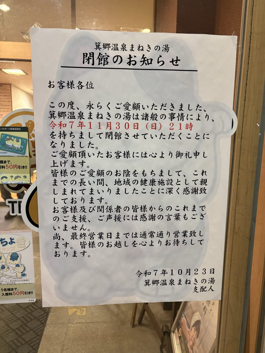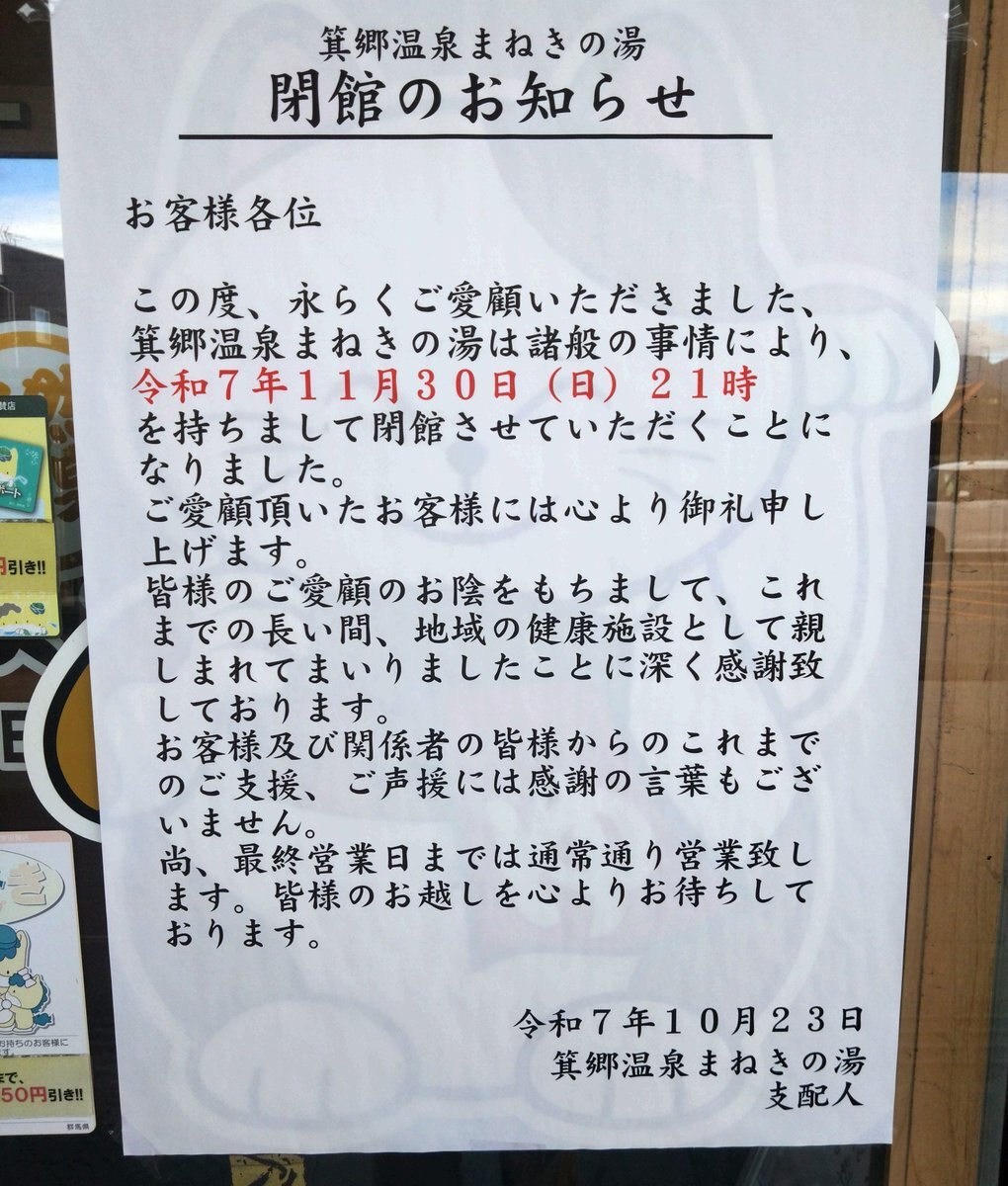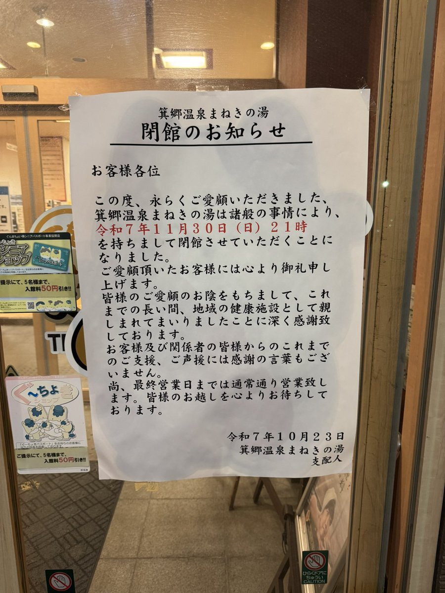 あら群馬もついに… 箕郷温泉まねきの湯(群馬・高崎市)が11月30日に閉館 コシダカホールディングス(前橋市)は温浴事業から撤退へ | 上毛新聞電子版|群馬県のニュース・スポーツ情報 jomo-news.co.jp/articles/-/803…