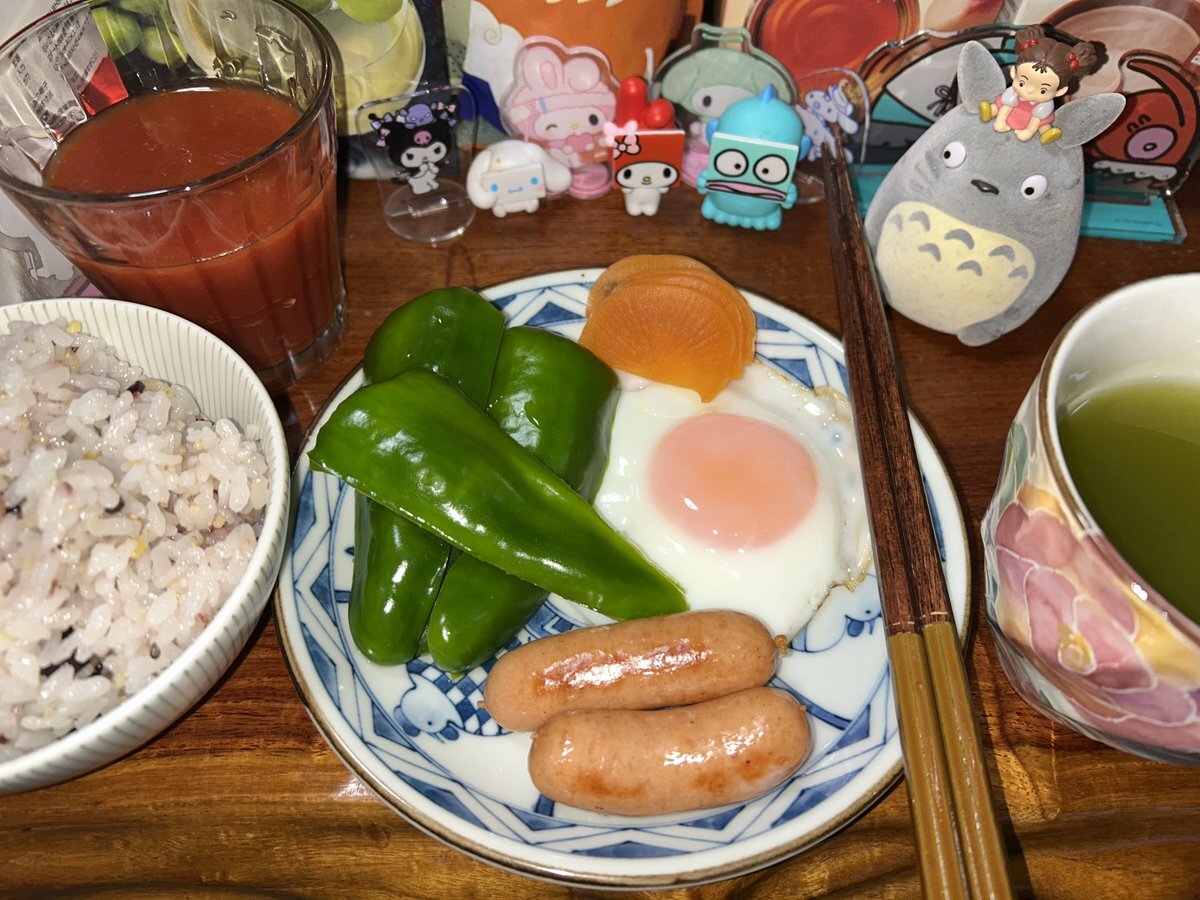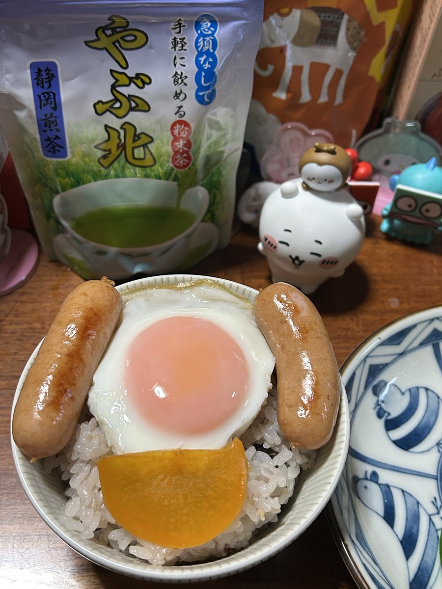 頭痛治りました💊 朝ご飯🍚 目玉焼き🍳 みそ漬だいこん ウインナー オンザライス🍚 〆は やぶ北粉末茶 お茶漬け🍚 おクスリ💊も飲みました💕︎ 大変美味しく頂きました ご馳走様でした\(^o^)/ サブ垢 @photomediakun