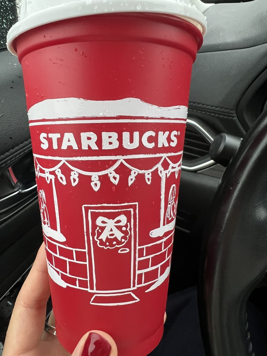 今年のスタバのレッドカップ無事にゲット🎄✨ 今回はアート多めのロゴ小さめ!個人的には可愛くて今年は当たり🎯かな🥳 ベイエリア雨なので店内空いててモバイルオーダー多かった! pic.x.com/k9CcYiBHjI